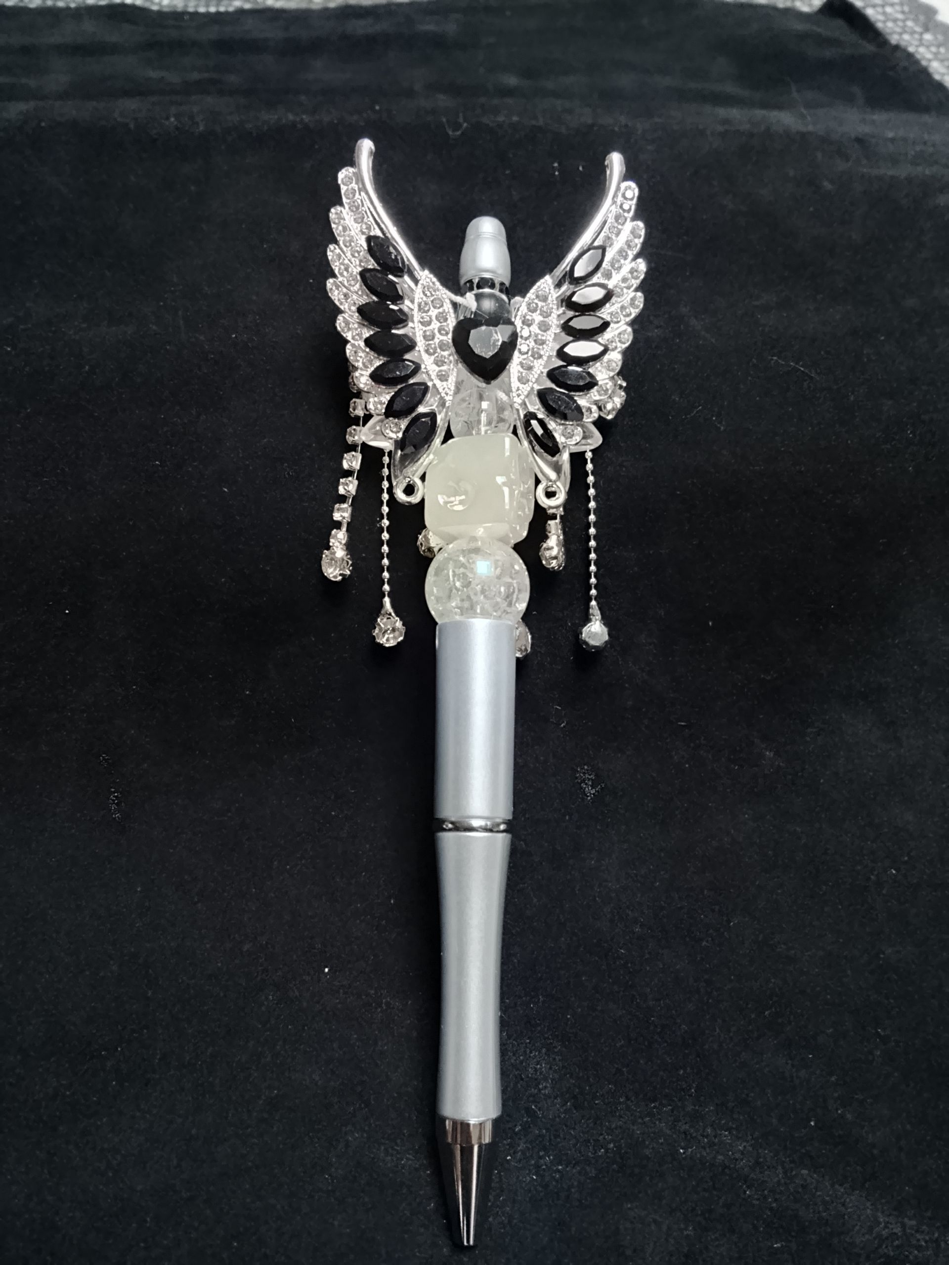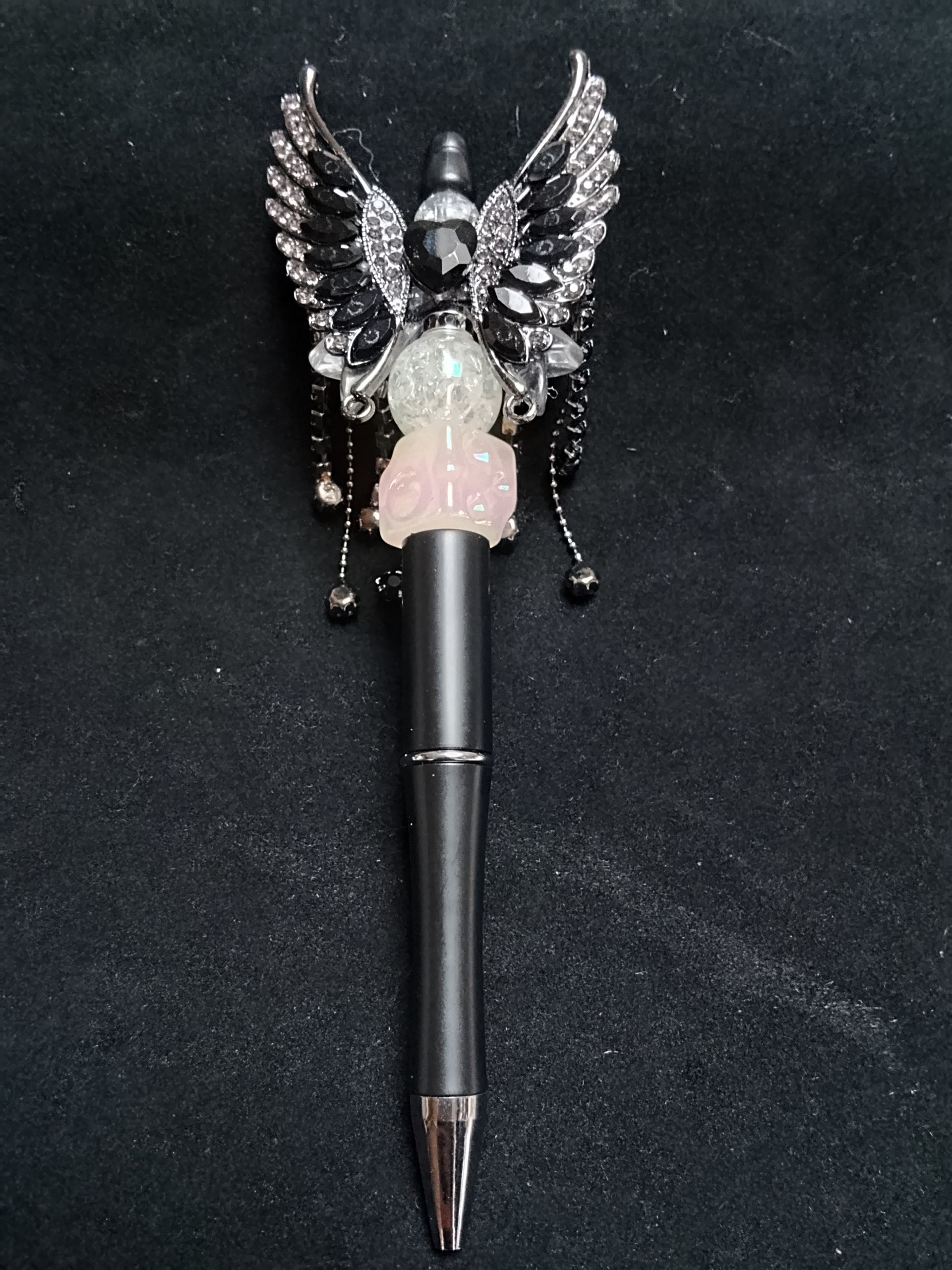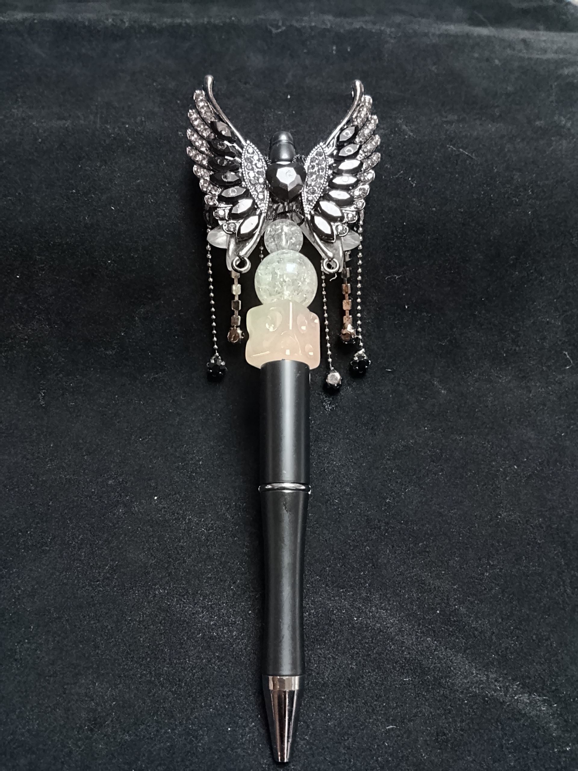 Pen met engelenvleugels en kristallen