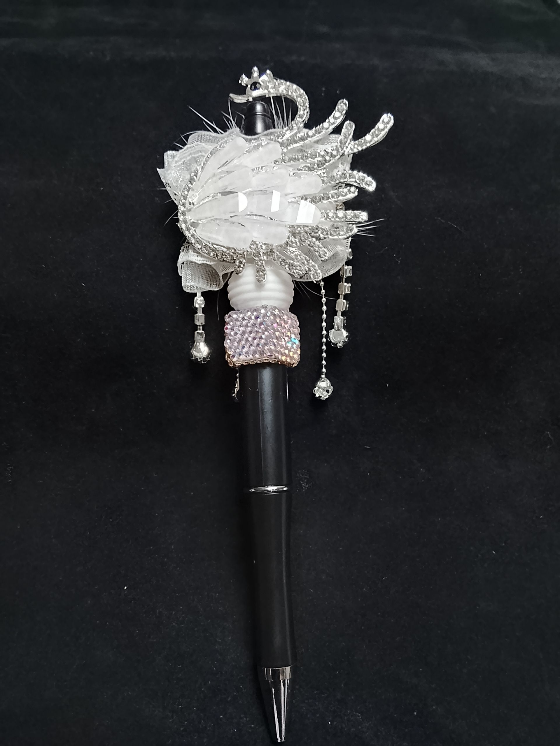 Pen met zwaan en kristallen